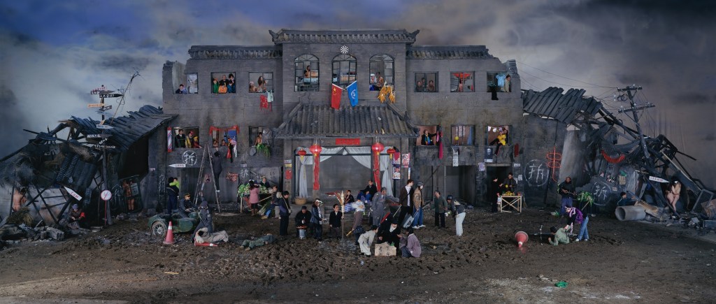 Wang Qingsong’s monumental photography unveils the deep structures of Chinese history and society. The title of the first survey of Wang’s work in Australia, exhibited at the Cullity Gallery in the School of Design at the University of Western Australia, is Everlasting Inscription. It attempts to describe Wang’s resistance to the forgetting of Chinese history, while illuminating the structural legacies by which life in China assumes its collective shape. With its constant upheavals, its massification and overbearing, bureaucratic governance, China is constantly engaged in rewriting its own history. The state is engaged in an ongoing struggle works to conceal and erase aspects of the past. In foregrounding aspects of this past, Wang reconstructs and stages processes of transformation, turning erasure into visibility. His images inscribe collective memory within fictionalized settings, preserving fragments even as they slip away. Yet each inscription signals its own incompletion: memory is always in loss, and inscription is always deferred.